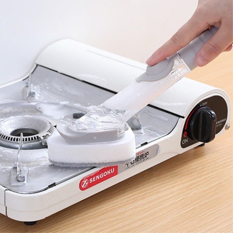 কিচেন ক্লিনিং ব্রাশ স্ক্রাবার ডিশ বোল ওয়াশিং স্পঞ্জ উইথ রিফিল লিকুইড সোপ ডিসপেনসার স্বয়ংক্রিয় সাবান ডিশ ক্লিনিং ব্রাশের পণ্যের বিবরণ